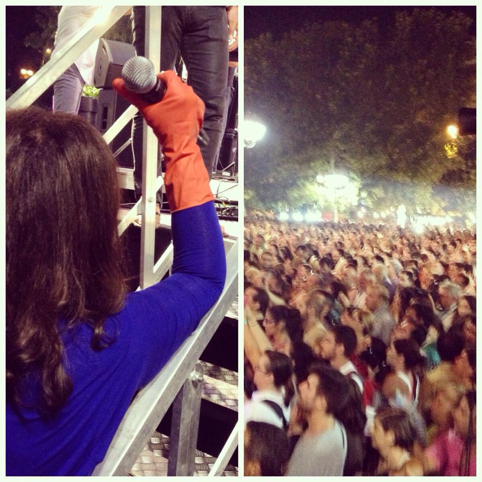 29/07/2014 στις 10:52Κι όμως η αφίσα της συναυλίας δεν ήταν τυχαία, αφού η Χάρις Αλεξίου φόρεσε γάντια καθαρισμού και έπιασε το μικρόφωνο για τις 595 απολυμένες καθαρίστριες.