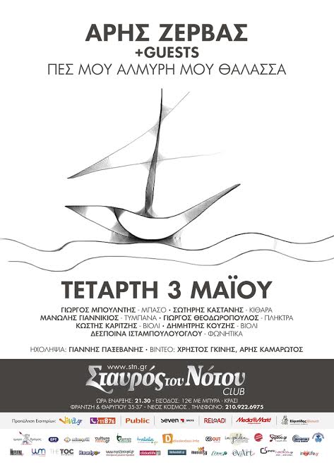 Μετά την πρόσφατη κυκλοφορία του δίσκου “Πες μου αλμυρή μου θάλασσα”, την Τετάρτη 3 Μαΐου, ο Άρης Ζέρβας παρουσιάζει ζωντανά στο Σταυρό του Νότου, τα τραγούδια αλλά και τα ορχηστρικά κομμάτια του άλμπουμ, καθώς και αγαπημένες διασκευές.