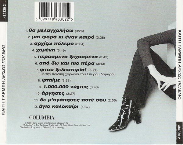 05/09/2016 στις 3:34Το 1996, η Καίτη Γαρμπή κυκλοφορεί τον θρυλικό πλέον δίσκο “Αρχίζω πόλεμο“. Μουσική υπογράφουν οι Φοίβος, Χάρης Ανδρεάδης και Ανδρέας Μέξας ενώ στίχους οι Φοίβος, Γιάννης Δόξας και Σμαρούλα Μαραγκουδάκη.