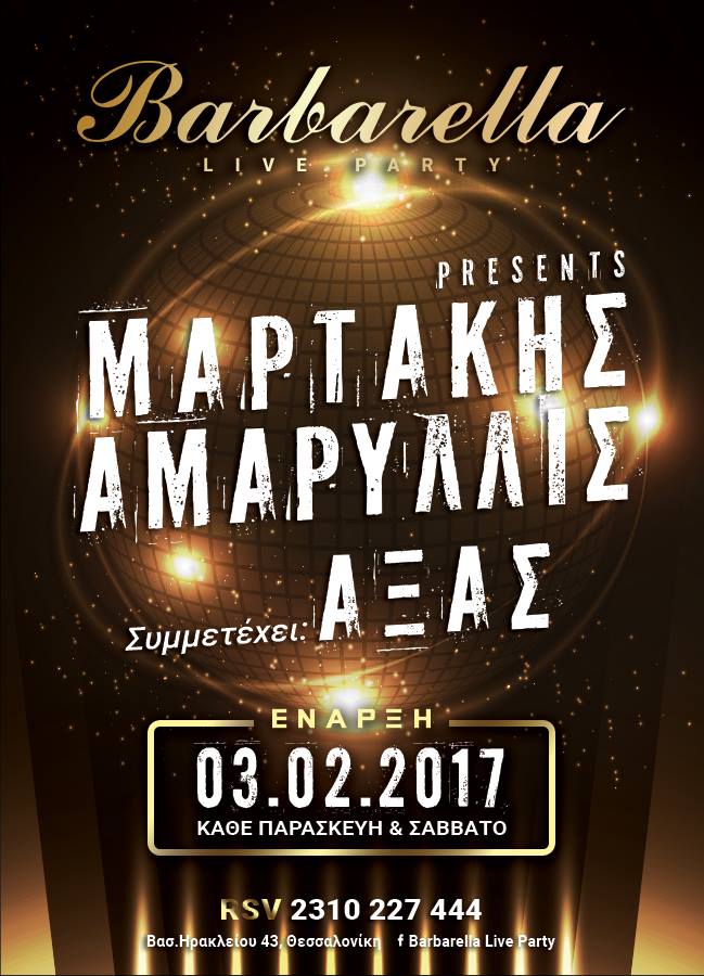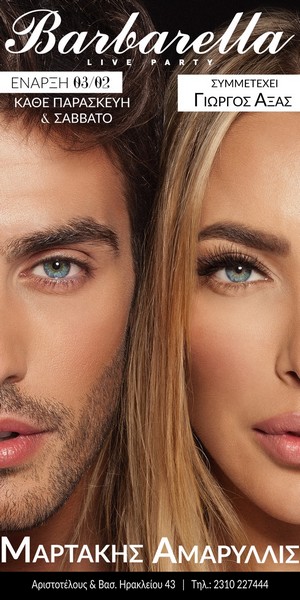 Από την Παρασκευή 3 Φεβρουαρίου και κάθε Παρασκευή και Σάββατο, ο Κώστας Μαρτάκης και η Αμαρυλλίς θα ξεσηκώνουν τη Θεσσαλονίκη στο Barbarella live party.