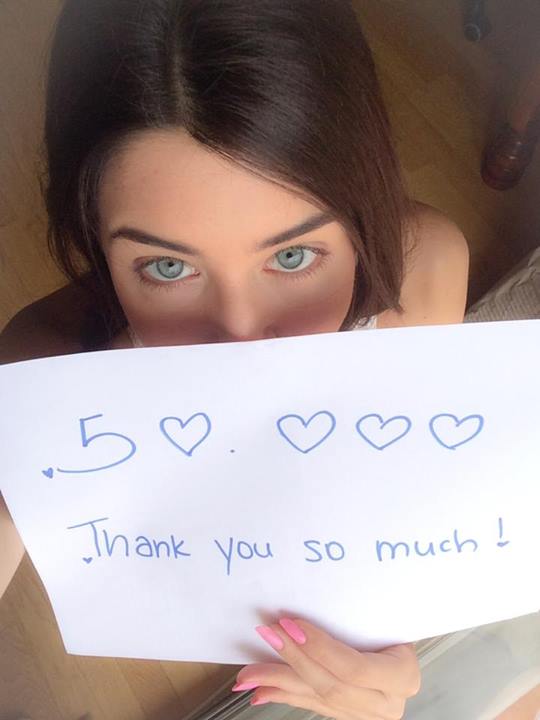 04/06/2014 στις 4:33Η Demy συγκέντρωσε 50.000 likes στην προσωπική της σελίδα στο Facebook, και ανέβασε σχετική φωτογραφία με τον εαυτό της να κρατάει ένα χαρτί, στο οποίο ζωγράφισε το δικό της “Ευχαριστώ”.