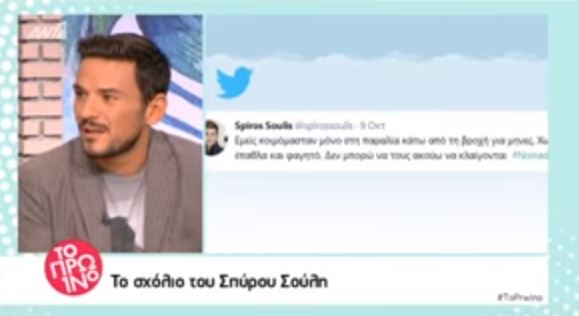Στη συνέχεια ο Κώστας Τσουρός διάβασε και το tweet του Σπύρου Σούλη: «Εμείς κοιμόμασταν μόνο στην παραλία κάτω από τη βροχή για μήνες. Χωρίς έπαθλα και φαγητό. Δεν μπορώ να τους ακούω να κλαίγονται»!