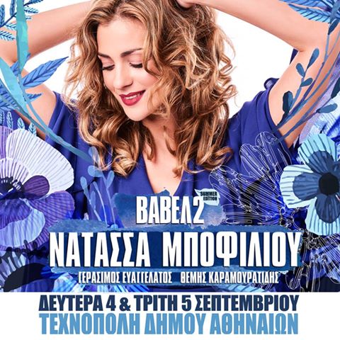 Η Νατάσα Μποφίλιου ολοκληρώνει την καλοκαιρινή της περιοδεία με δυο μεγάλες συναυλίες στην Αθήνα και συγκεκριμένα στην Τεχνόπολη του Δήμου Αθηναίων στην περιοχή του Κεραμεικού.