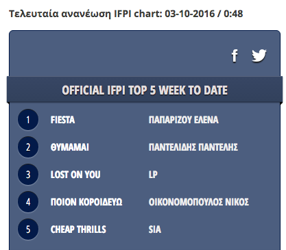 Δείτε παρακάτω το top 5 των ραδιοφωνικών airplay για σήμερα 3 Οκτωβρίου: