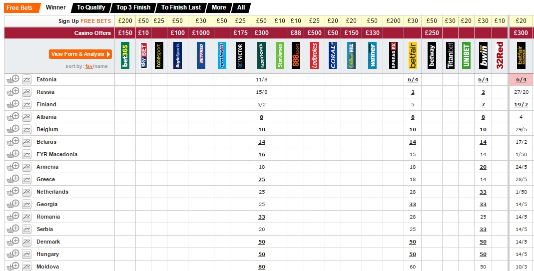 Τα στοιχήματα δε φαίνεται να είναι τόσο ευνοϊκά για τη χώρα μας, αφού μας φέρνουν στην 26η θέση για τη νικήτρια χώρα (με 21η την Κύπρο) ενώ στα στοιχήματα για το αν θα μπούμε στη δεκάδα, ερχόμαστε 20οι.