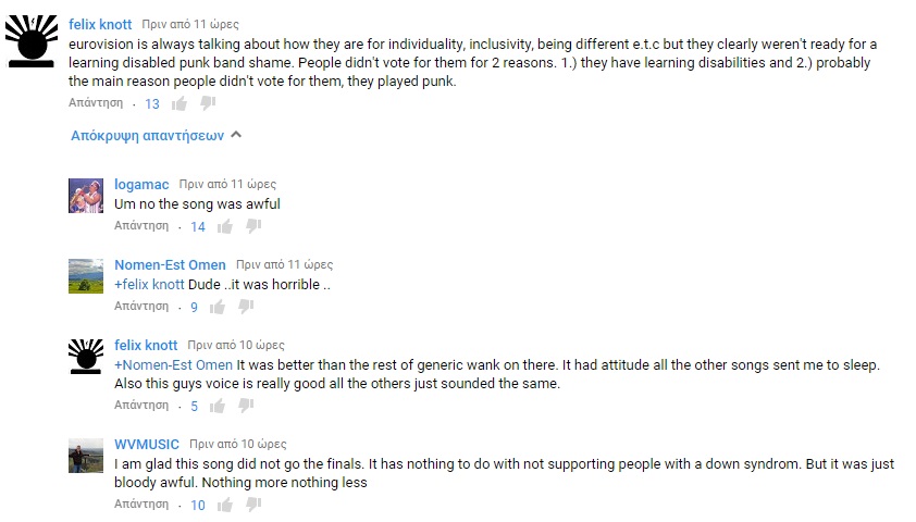 Αρκετοί ήταν αυτοί που θεώρησαν πώς το συγκρότημα έπρεπε να περάσει, λόγω της διαφορετικότητας και της εναλλακτικής πρότασης τους στο διαγωνισμό. Άλλοι πάλι σχολίασαν πως σε έναν διαγωνισμό τραγουδιού δεν πρέπει να “προκαλούμε” την ευαισθητοποίηση του κοινού, και πως το τραγούδι το οποίο παρουσιάστηκε από άτομα με σύνδρομο Down δεν ήταν όντως καλό για να περάσει στον τελικό.