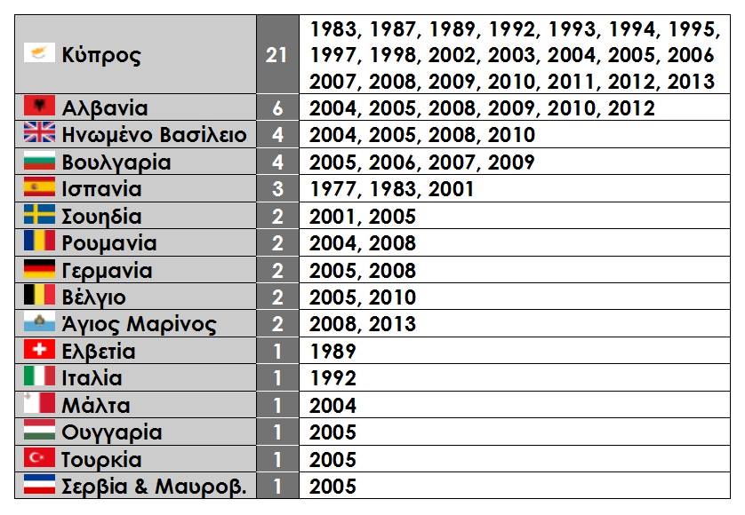 Ευχαριστούμε το Eurovision Fans Greece group στο Facebook για τον πίνακα.
