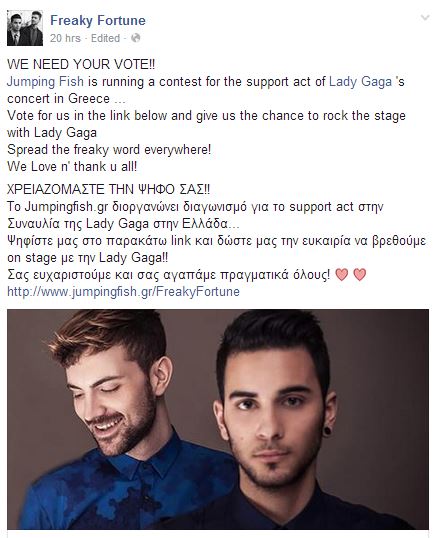 Jumping Fish is running a contest for the support act of Lady Gaga ‘s concert in Greece …