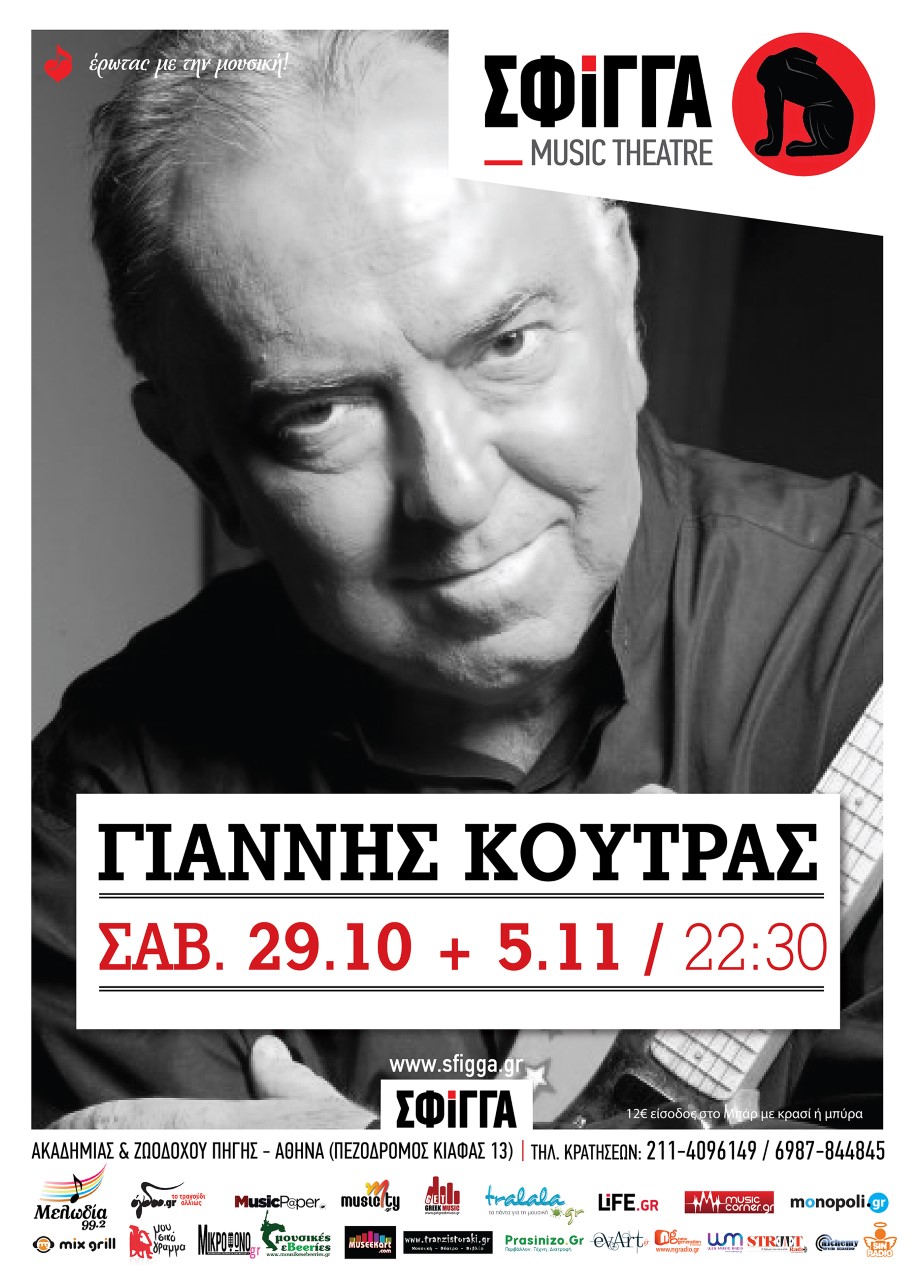 Δύο ξεχωριστές εμφανίσεις θα πραγματοποιήσει ο Γιάννης Κούτρας στη μουσική σκηνή Σφίγγα το Σάββατο 29 Οκτωβρίου και το Σάββατο 5 Νοεμβρίου και ώρα 22:30.
