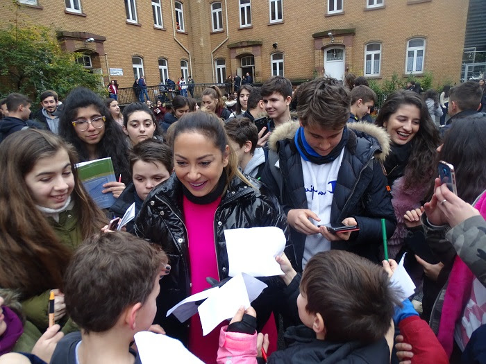 Στη διάρκεια της σύντομης αυτής επίσκεψης της στη γερμανική πόλη, επισκέφθηκε με τον παραγωγό της περιοδείας, Αλέξανδρο Καρόζα, το σημείο εκείνο στο οποίο χτυπά η καρδιά του Ελληνισμού, το «Ελληνικό Σχολείο Φρανκφούρτης», όπου και έγινε δεκτή με πολύ αγάπη και ενθουσιασμό.