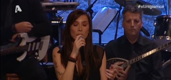 Η τραγουδίστρια επέλεξε να ερμηνεύσει και τον “Ευαίσθητο ληστή” του Μάνου Χατζιδάκι συγκεντρώνοντας όλα τα βλέμματα επάνω της.