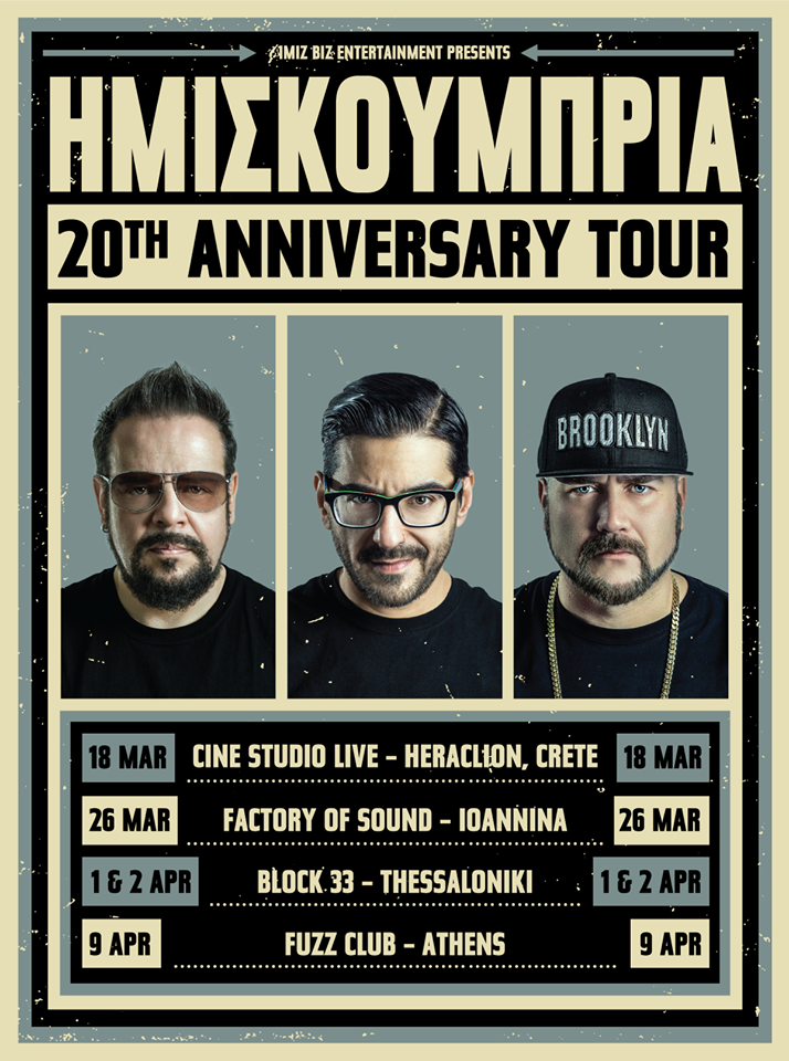 Το αγαπημένο συγκρότημα των Ημισκούμπρια με αφορμή τα 20 χρόνια συνεχούς παρουσίας στην ελληνική μουσική σκηνή θα κάνει ένα mini Tour σε 4 πόλεις της Ελλάδας: Ηράκλειο, Ιωάννινα, Θεσσαλονίκη και Αθήνα.
