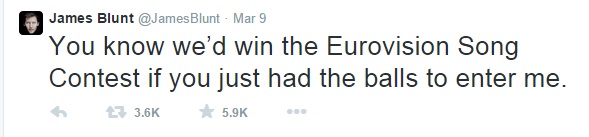 11/03/2015 στις 2:36Νευράκια έχει ο James Blunt με το διαγωνισμό τραγουδιού της Eurovision.