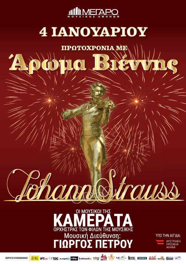 Η Καμεράτα-Ορχήστρα των Φίλων της Μουσικής, ή Αrmonia Atenea, όπως είναι διεθνώς γνωστή, υπό τη διεύθυνση του χαρισματικού, κορυφαίου έλληνα μαέστρου Γιώργου Πέτρου θα μας ταξιδέψουν στην Βιέννη με παραδοσιακά και διάσημα βαλς σε ένα πρόγραμμα με τίτλο «Πρωτοχρονιά με Άρωμα Βιέννης».