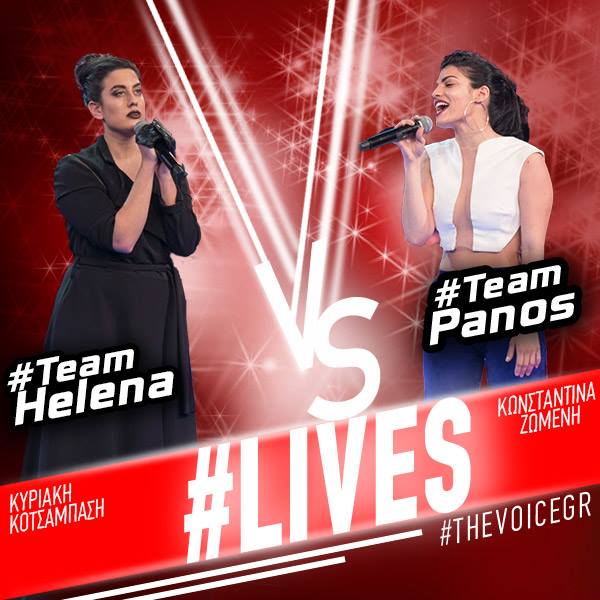 Η Κωνσταντίνα Ζωμενή από την ομάδα του Πάνου Μουζουράκη μονομαχεί με την Κυριακή Κοτζιάμπαση από την ομάδα της Έλενας Παπαρίζου.