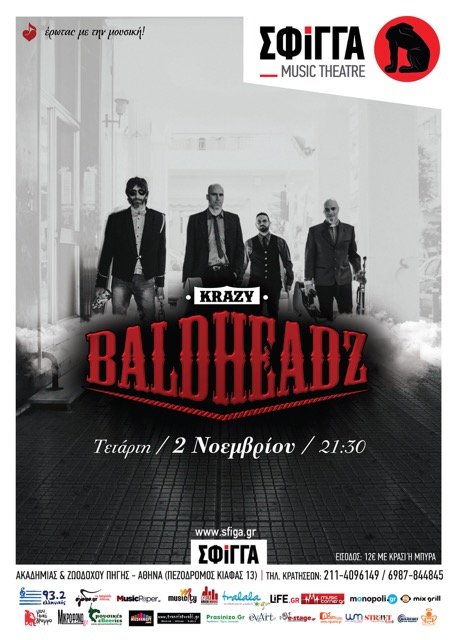 Την Τετάρτη 2 Νοεμβρίου οι KRAZY BALDHEADZ στη μουσική σκηνή Σφίγγα.
