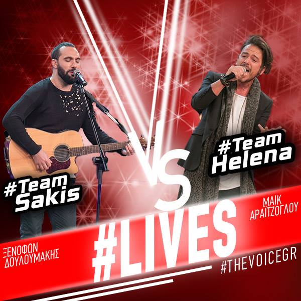 Ο Μάικ Αραϊτζόγλου από την ομάδα της Έλενας Παπαρίζου μονομαχεί με τον Ξενοφών Δουλουμάκη από την ομάδα του Σάκη Ρουβά.