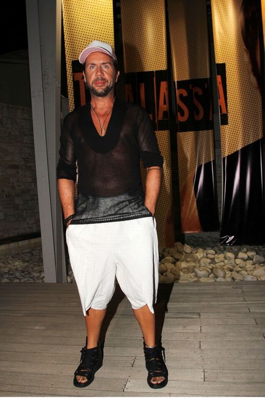 Ακόμα μια εμφάνιση του, στο Thalassa People’s Stage με λευκή βερμούδα και μαύρο διάφανο top.