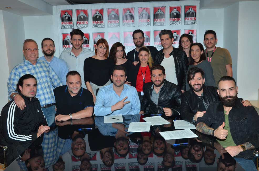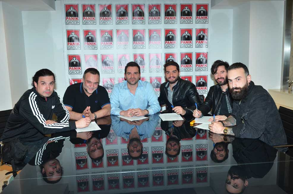 Ο Γιώργος Αρσενάκος, CEO της Panik Entertainment Group, με τους Χρήστο Μάστορα, Κώστα Μαυρογένη, Παντελή Κυραμαργιό και Θάνο Λαϊτσά μαζί με τον Γιάννη Κουτράκη manager των ΜΕΛΙSSES, υπέγραψαν την ανανέωση της συνεργασίας τους, παρουσία όλης της ομάδας της Panik Entertainment Group.