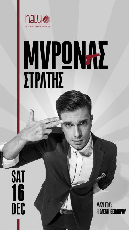 O Μύρωνας Στρατής φοράει τα καλά του και μας προσκαλεί σε τρία ακόμη εορταστικά hot live party στο nāLu. Μαζί του η Ελένη Θεοδώρου, που ξεχώρισε στο talent show “The Voice”.