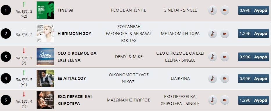Μπορεί η Ελεωνόρα Ζουγανέλη να ήταν για πολλές εβδομάδες κάτω από τη Demy, στη 2η θέση, μετά από ένα σερί από #1 με το “Η επιμονή σου“, δεν πρόλαβε να χαρεί ωστόσο την πτώση του “Όσο ο κόσμος θα έχει εσένα”, αφού κατάφερε να περάσει μπροστά και να φτάσει στην κορυφή το “Γίνεται“ του Αντώνη Ρέμου!