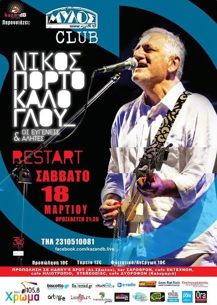 Ο αγαπημένος Νίκος Πορτοκάλογλου πρόκειται να εμφανιστεί στο ΜΥΛΟΣ CLUB το Σάββατο στις 18 Μαρτίου. Ο ίδιος παρακάτω μας εξηγεί γιατί το φετινό πρόγραμμα το ονόμασε Restart.