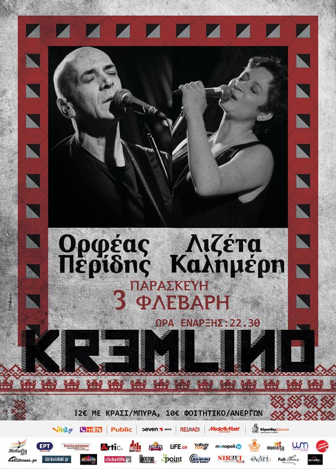 Την Παρασκευή 3 Φεβρουαρίου θα βρίσκονται στο Kremlino o Ορφέας Περίδης και η Λιζέτα Καλημέρη, για να μας θυμίσουν τραγούδια που έχουν συνδεθεί με την προσωπική τους πορεία.