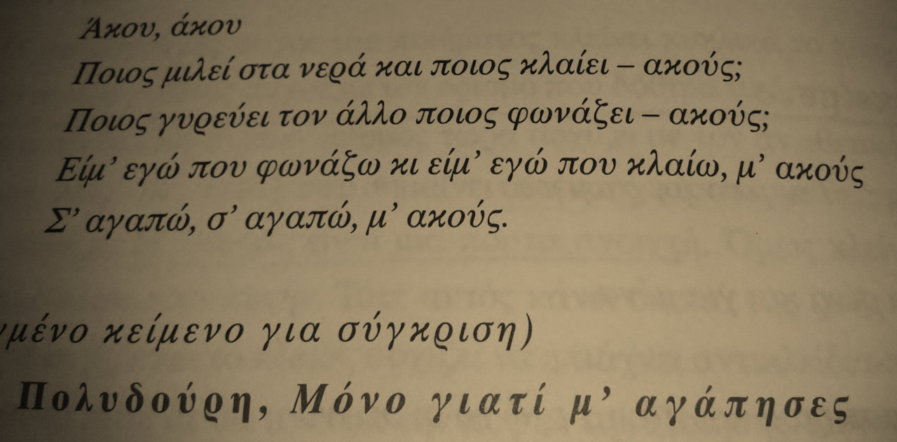 μόνο γιατί τα μάτια σου με κύτταξαν.”