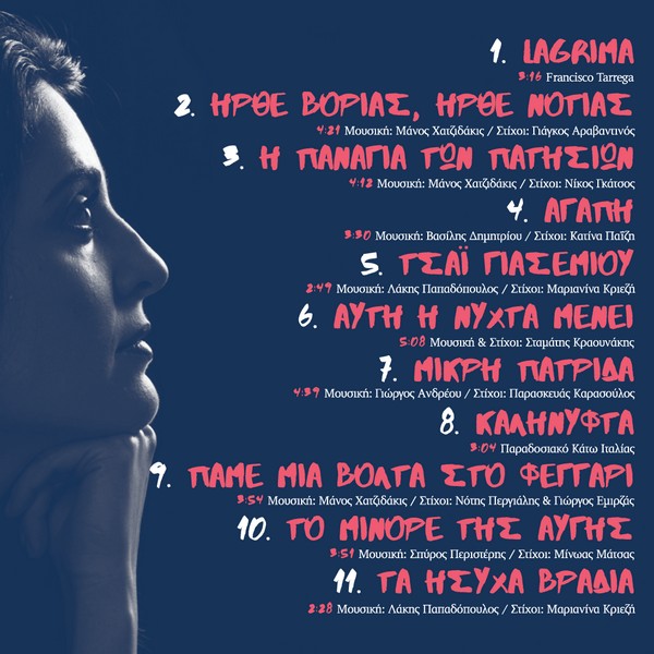 Τραγούδια που μας ταξιδεύουν και μας μαγεύουν όπως το “Ήρθε Βοριάς, ήρθε νοτιάς“, “Το μινόρε της αυγής“, “Αυτή η νύχτα μένει“, “Τσάι Γιασεμιού“, “Μικρή Πατρίδα” και πολλά ακόμα κομμάτια, έρχονται να πλημμυρίσουν με πλούσια συναισθήματα τις στιγμές μας και να μας παρασύρουν.