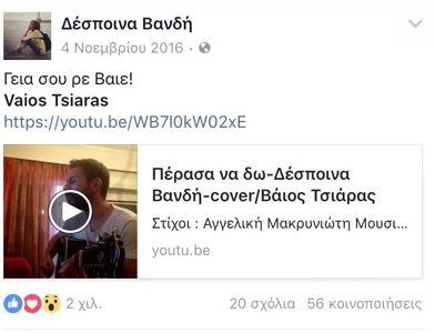 Μάλιστα η ίδια η Δέσποινα Βανδή κοινοποίησε το βίντεο του στην επίσημη σελίδα της στο Facebook γράφοντας: