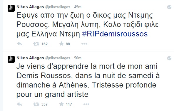 Ο Νίκος Αλιάγας για τον Ντέμη Ρούσσο στο Twitter