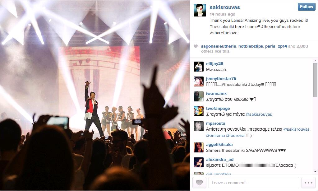 Και ο Σάκης Ρουβάς όμως ανέβασε χθες το βράδυ φωτογραφία από το live του στη Λάρισα, με τα likes να πέφτουν βροχή!