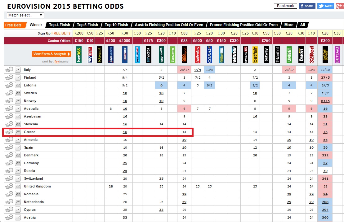 Eurosong 2015 | Δείτε την εξαιρετική ερμηνεία της Μαρίας Έλενας Κυριάκου στο "One Last Breath"!Η Ελλάδα μπήκε ενεργά στη μάχη των στοιχημάτων της Eurovision. Λίγες ώρες μετά την ανάδειξη της Μαρίας Έλενας Κυριάκου ως νικήτρια του Ελληνικού Τελικού, το “One Last Breath” φιγουράρει στην 9η θέση των μεγαλύτερων γραφείων στοιχημάτων της Eurovision, ανάμεσα σε 40 συμμετοχές.
