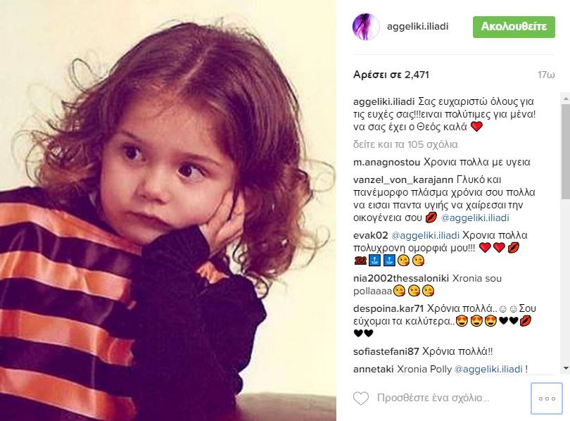 Η τραγουδίστρια δημοσίευσε τη συγκεκριμένη φωτογραφία στο Instagram, θέλοντας να ευχαριστήσει όλους τους διαδικτυακούς της φίλους για τις ευχές που δέχθηκε για την ονομαστική της γιορτή.