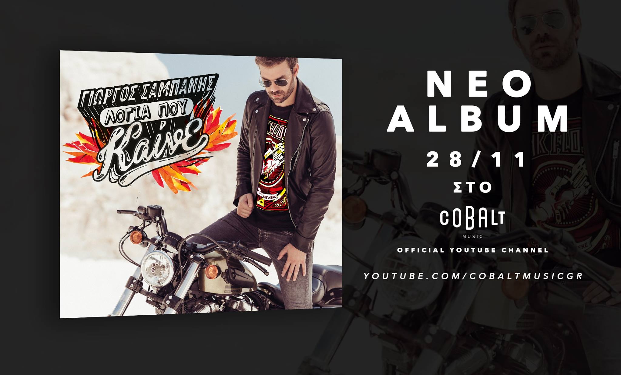 Από τη Δευτέρα 28 Νοεμβρίου και κάθε μέρα θα δημοσιεύονται στο επίσημο κανάλι της Cobalt Music από 2 τραγούδια της νέας δισκογραφικής δουλειάς του Γιώργου Σαμπάνη με τίτλο “Λόγια που καίνε” μέχρι την επίσημη κυκλοφορία του στα δισκοπωλεία.