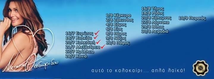 Η καλοκαιρινή της περιοδεία ξεκίνησε με πρώτο σταθμό τον Ευρώτα, ενώ η Χαλκίδα, τα Μουδανιά και η Αλεξάνδρεια ήταν οι επόμενες τρείς πόλεις που φιλοξένησαν φέτος την παράσταση που φέρει τον τίτλο «αυτό το καλοκαίρι.. απλά λαϊκά!!».
