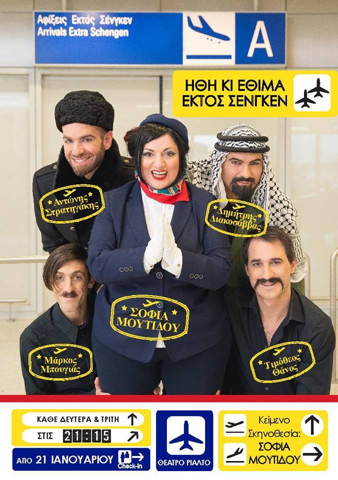 Η Σοφία Μουτίδου και τα αγόρια της, με «συνταξιδιώτη» τους, το πάθος τους για το θέατρο, μας καλούν στις 21,22, 28,29 Ιανουαρίου, αλλά και στις 4,5, 11,12,18,19,25 και 26 Φεβρουαρίου, στο θέατρο «Ριάλτο-Αλέκος Αλεξανδράκης», ενώ αναμένονται να δοθούν και άλλες ημερομηνίες παραστάσεων, για να απολαύσουμε το ωραιότερο «ταξίδι» στην κωμωδία, που θα μας βγάλει εκτός Σένγκεν, και όχι μόνο!