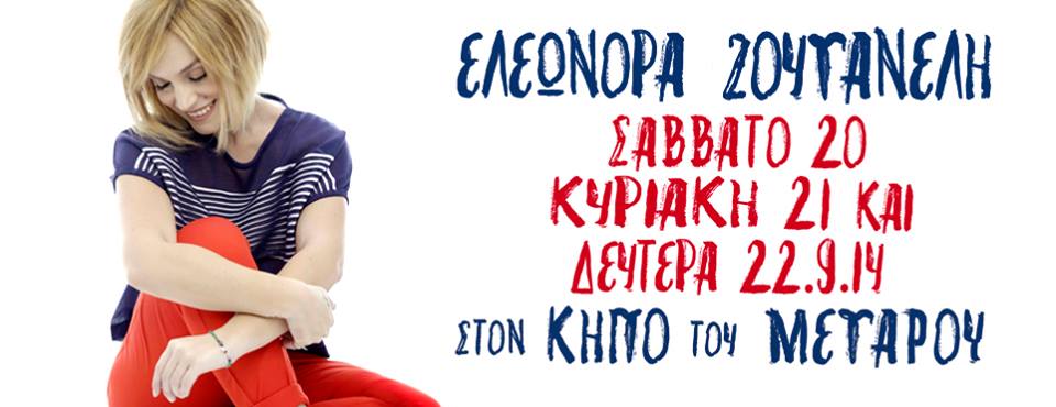 Η Ελεωνόρα Ζουγανέλη κλείνει τον κύκλο των καλοκαιρινών της εμφανίσεων στα πλαίσια της περιοδείας “Η δύναμη σου… δύναμη μου” με 3 συνεχόμενες συναυλίες στον Κήπο του Μεγάρου Μουσικής, το Σάββατο 20/09, την Κυριακή 21/09 και τη Δευτέρα 22/09.