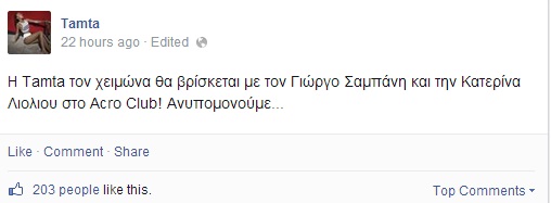 Η ανακοίνωση έγινε μέσα από την επίσημη σελίδα της Tamta στο Facebook:
