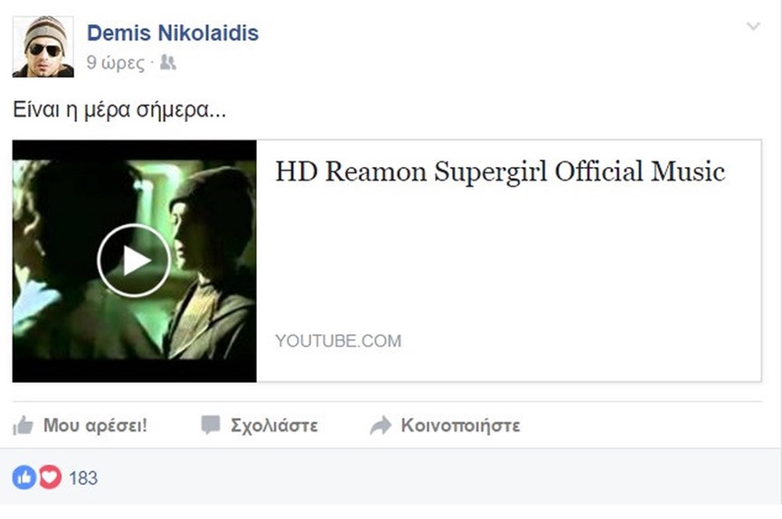 Από την άλλη ο Ντέμης Νικολαΐδης ανέβασε στον προσωπικό του λογαριασμό στο Facebook το τραγούδι “Supergirl” του συγκροτήματος Reamon γράφοντας: “Είναι η ημέρα σήμερα”