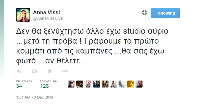 Πρόκειται για τη νέα ροκ όπερα στην οποία πρωταγωνιστεί η Άννα Βίσση. Για τις ανάγκες λοιπόν της παράστασης, η Άννα Βίσση και οι συνεργάτε της θα ηχογραφήσουν σήμερα το πρώτο τραγούδι της παράστασης, όπως δήλωσε και η ίδια στο Twitter: