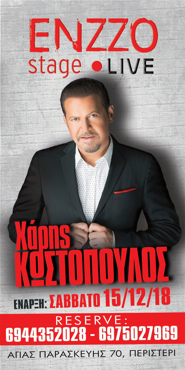 Αξίζει να σημειωθεί ότι ο Χάρης Κωστόπουλος από το Σάββατο 15 Δεκεμβρίου θα ξεκινήσει εμφανίσεις στο Enzzo live stage, έχοντας στο πλευρό του τη Μαρία Εγγλέζου.