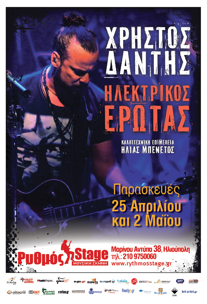 22/04/2014 στις 4:40Για δύο μοναδικές εμφανίσεις επιστρέφει στο Ρυθμό Stage ο Χρήστος Δάντης, με τίτλο “Ηλεκτρικός Έρωτας”, που αποτελεί μια τρίωρη παρουσίαση των μεγαλύτερων επιτυχιών της 20χρονης πορείας του στη μουσική βιομηχανία. Για δύο Παρασκευές, στις 25 Απριλίου και στις 2 Μαΐου ο Χρήστος Δάντης πρόκειται να βάλει φωτιά για πολλοστή φορά στη σκηνή του Ρυθμού Stage.